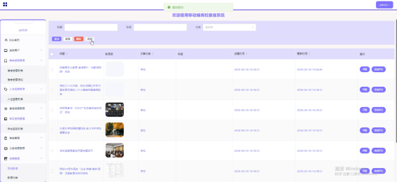 学校资讯:可以发布到学校资讯详情,进行查询,添加、删除等操作。界面如下图所示。