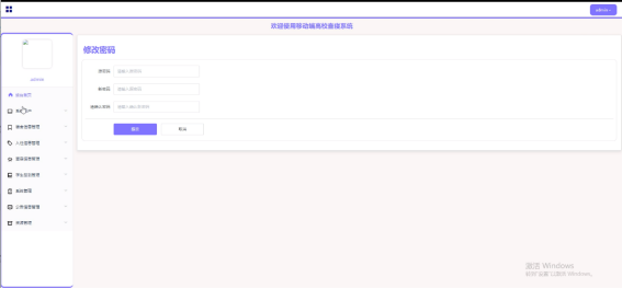 (9)修改密码:管理员点击“修改密码”按钮,可以对登录密码进行更改,首先输入原密码,然后再输入新密码和确认密码,当原密码正确,输入两次新密码一致,