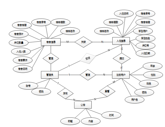 数据库概念结构设计主要涉及数据库的实体和实体之间的关系。通过实体-关系模型或者其他适当的模型,我们将定义系统中涉及的各个实体以及它们之间的联系。下面是整个移动端高校查寝系统小程序的总E-R关系图。
