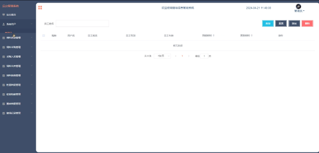 系统用户管理:管理员负责管理系统的用户,包括管理员和员工用户的登录、权限分配等操作。他们可以添加、编辑、删除或审核用户账户,并设定相应的权限。系统用户管理界面如下图所示。