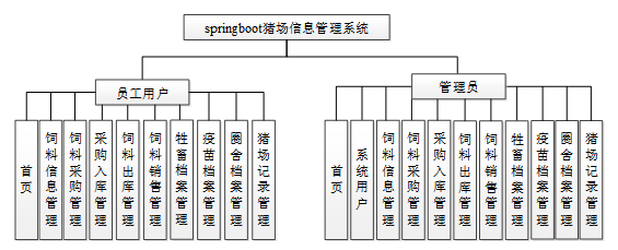 猪场信息管理系统可以划分为注册员工用户和管理员模块两大部分。