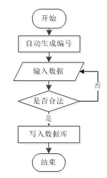 用户成功登入系统后就能够实现增加数据的操作,增加数据的编号是特定的,系统生成,用户不能随意填写,除了编号以外,其他增加信息用户自己填写,填写后的信息经过系统验证,验证合法通过就显示增加数据成功了,相反的话,就没有增加成功,图3-1显示的就是在增加数据时的流程。