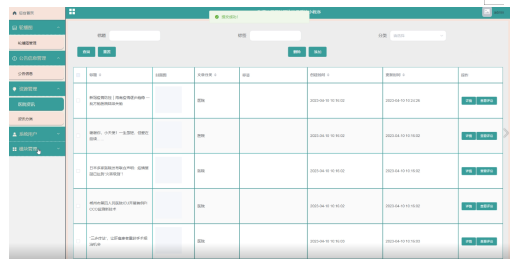 | 用户点击“公告发布”,填写相关数据后点击“确定”。 | 在必填项输入测试数据 | 提示“发布成功” | 提示“发布成功” | 与期望结果相同 |