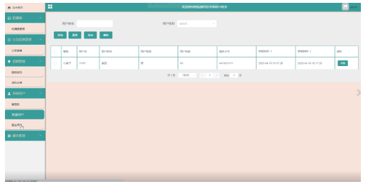 用户管理,在用户管理页面可以查看用户名、姓名、性别、头像、用户积分等信息,并可根据需要进行修改或删除操作,如下图所示。