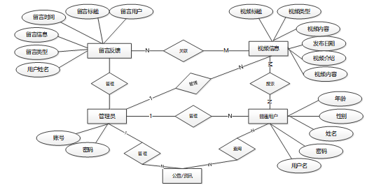 通过短视频推荐系统的功能进行规划分成几个实体信息,实体信息将通过ER图进行说明,本系统的主要实体图如下: