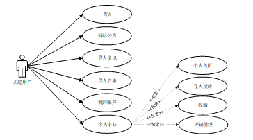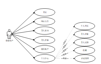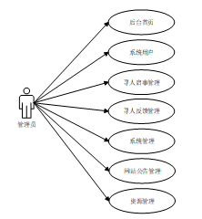 系统用例分析是对寻人启事信息管理系统中各个功能模块的用户需求和行为进行分析,以识别和描述不同的用户用例。通过系统用例分析,可以深入了解用户在系统上的操作流程和交互方式,为系统设计和开发提供指导,并确保系统能够满足用户的需求和期望。