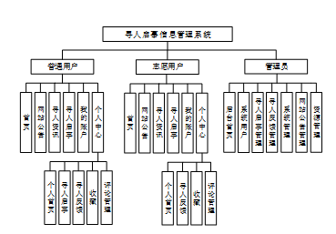 本系统旨在满足普通用户、志愿用户和管理员三大角色的功能需求,提供寻人启事信息发布、浏览、反馈及管理的全方位支持。通过整合寻人启事发布、信息反馈、数据管理等功能模块,系统确保了信息传播的高效性与准确性,同时为不同用户提供个性化服务,提升用户体验与系统实用性。具体功能描述如下: