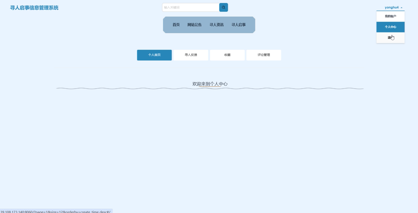个人中心:展示用户的个人信息和统计数据,如发布的寻人启事数量、寻人反馈、收藏数和评论信息等。支持一键跳转至相关功能模块。
