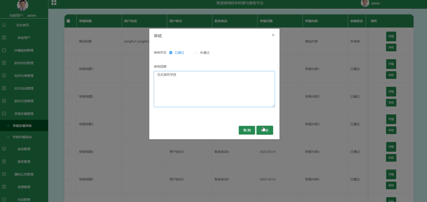 举报诈骗管理:处理用户提交的诈骗举报,核实信息后采取相应措施。