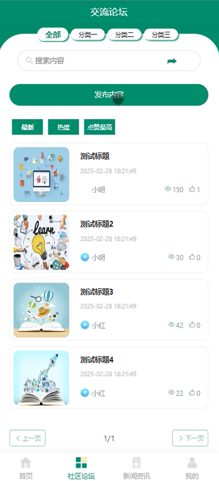 社区论坛:允许用户发布话题、参与讨论,增强社区互动。用户可以关注感兴趣的话题,与其他成员进行交流。
