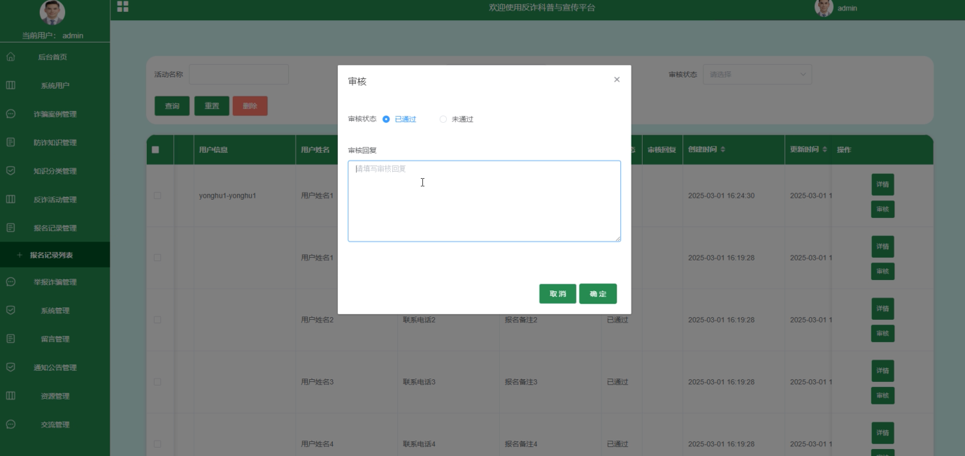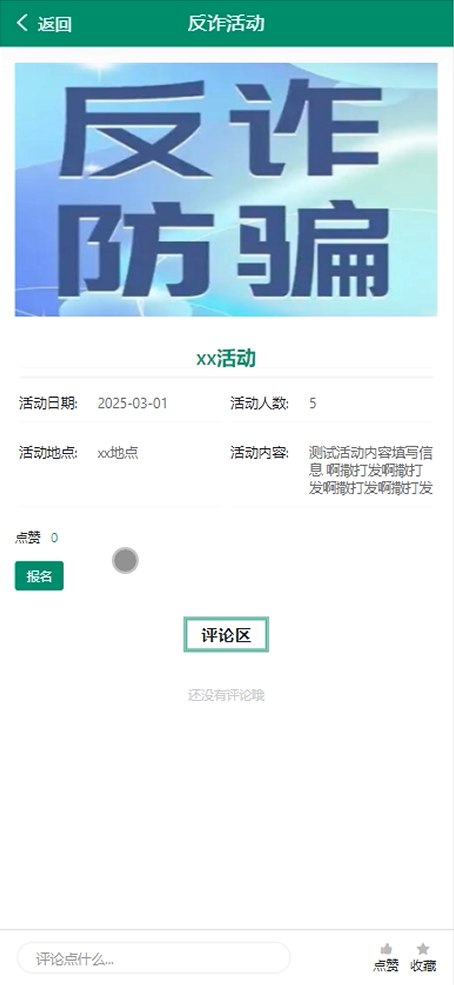 反诈活动管理:策划和管理线上线下反诈活动,处理用户的报名请求。