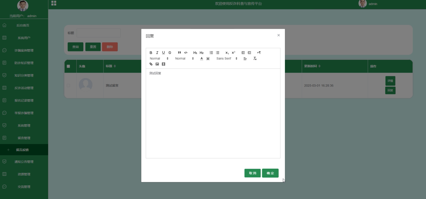 防诈知识管理:维护防诈知识库,更新视频资料和知识点,确保教育内容的丰富性。