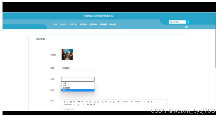 3、功能的完善性:可以管理主页,个人资料,公共管理(轮播图,在线公告),用户管理(管理员,普通用户,管理者用户),信息管理(在线留言,留言分类,旅游资讯,资讯分类),权限管理(权限列表),旅游基地,路线规划,周边服务等模块的修改维护操作。