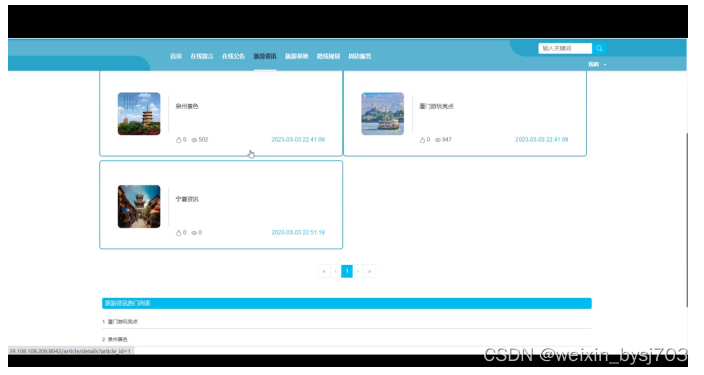 旅游资讯,用户在此页面可以查看旅游资讯的相关信息,可以进行收藏,点赞,评论等操作,如下图所示。