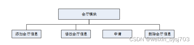 移动办公微应用系统小程序是中需要存储不少会厅信息,其模块功能结构,具体的结构图如下: