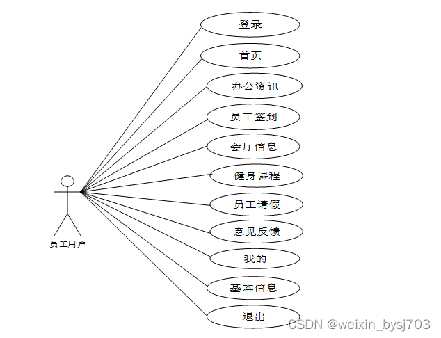 通过2.3功能的分析,得出了本移动办公微应用系统小程序的用例图: