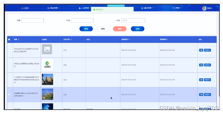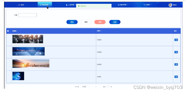 (1)网站管理:管理员可以对员工用户端展示的轮播图以及公告消息进行增删改查,方便用户进行查看。