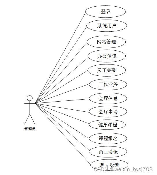 web后台管理上的管理员是维护整个移动办公微应用系统小程序中所有数据信息的。管理员角色用例如图2-4所示。