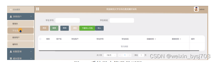系统用户,在此页面可以查看用户信息,还可在该页面对注册的学生用户、教师用户、辅导员以及管理员进行管控,如图5-3所示。
