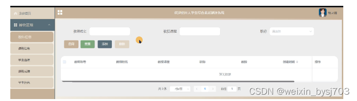 目前许多人仍将传统的单机设备作为信息管理的主要工具,而网络技术的应用只是起到辅助作用。在对网络工具的认知程度上,较为传统的office软件等仍是人们使用的主要工具,而面向各个专门行业的管理系统的信息管理软件仍然缺乏群众基础。本选题则旨在通过标签分类管理等方式,实现系统后台首页,系统用户(管理员、学生用户、教师用户、辅导员)权限管理、模块管理(年级名称、班级名称、院系名称、教程信息、课程信息、学生选课、课程成绩、学生信息、学生自评、辅导员评分、素质考评申请、扣分记录、扣分撤销、最终评分)个人信息等功能。