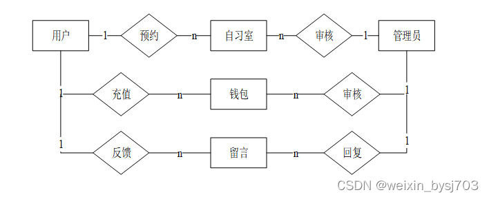 下面是整个共享自习室座位管理系统中主要的数据库表总E-R实体关系图。
