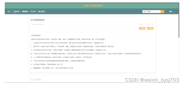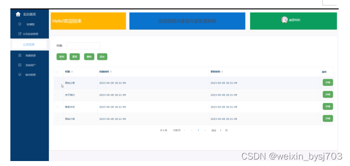 实现管理员通过计算机平台及时更新网站共享自习室管理信息,实现信息管理等。解决传统共享自习室管理存在的弊端。
