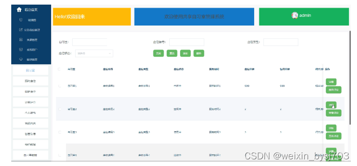 (2)共享自习室座位管理系统中的web后台管理中的前端使用的是bootstrap框架,它配合ajax和jquery可以美化页面设计。