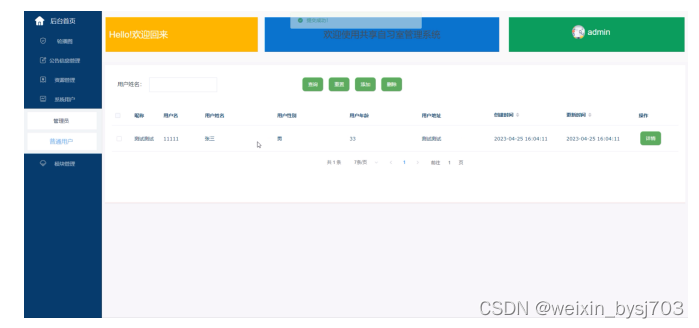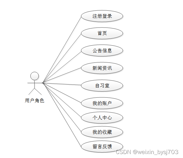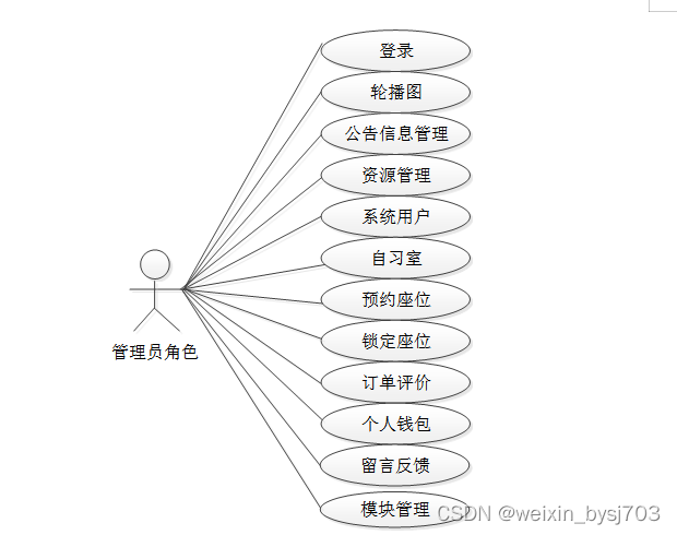 共享自习室座位管理系统从角色上划分为了管理员以及普通用户两种角色。