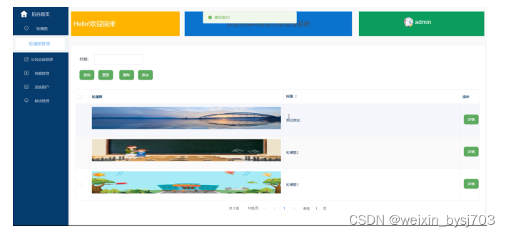 (2)轮播图/公告信息管理:管理员可以对系统前台展示的轮播图以及公告信息进行增删改查,方便用户进行查看。