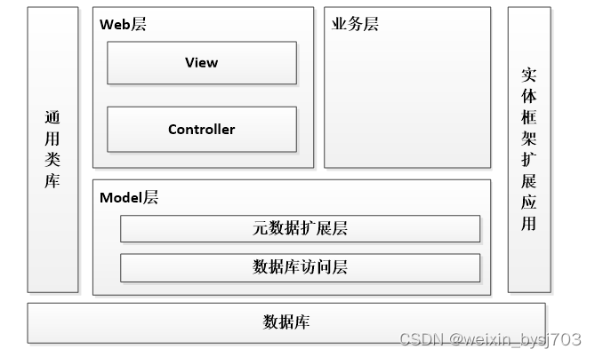 本大学生就业管理系统的架构设计主要分为可以3层,主要有Web层,业务层,Model层。其中web层还包括View层和Controller层,Model层包括元数据扩展层和数据访问层。