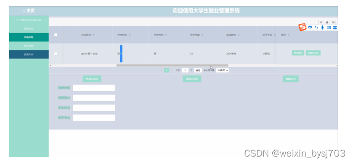 随着计算机互联网技术的迅猛发展,各行各业都已经实现采用计算机相关技术对日益放大的数据进行管理。该课题是大学生就业管理系统为核心展开的,主要是为了实现学生就业信息化管理和用户在线投递简历的需求。