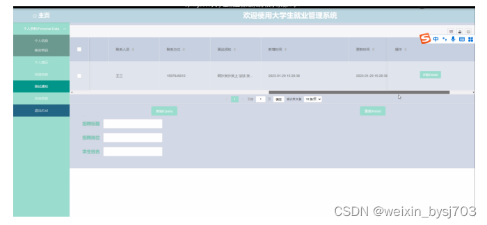 关键词:大学生就业管理;springboot框架;Mysql数据库