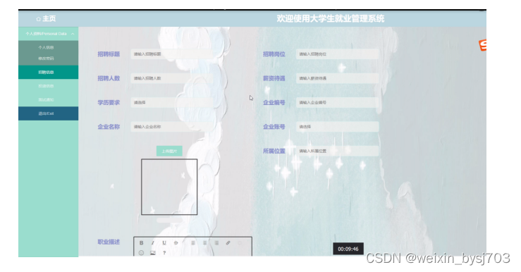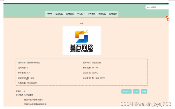 招聘信息管理:对职位信息进行维护,添加、删除、修改信息。