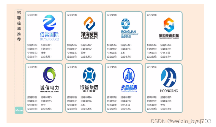 职位:存放给职位的内容,包括职位名称、缺口人数、企业号、企业名称、行业、规模、企业地址、联系电话、联系邮箱、企业简介等数据项。