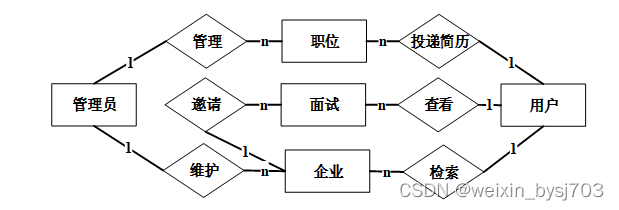 企业:存储各种企业信息。包括企业号、密码、企业名称、行业、规模、企业地址、企业照片、联系电话、联系邮箱、是否审核等数据项。