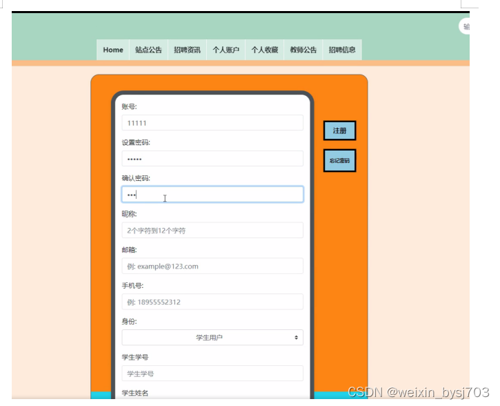 下表是注册功能测试用例,检测了各种数据的输入情况,观察系统的响应情况。得出该功能达到了设计目标。