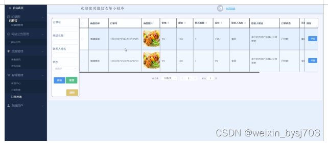 (5)商城管理:管理员对用户提交的菜品订单进行管控。