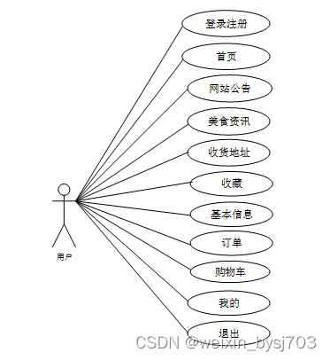 通过2.3功能的分析,得出了本微信点餐小程序的用例图: