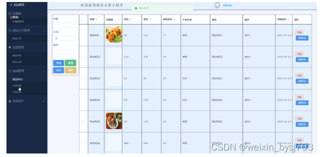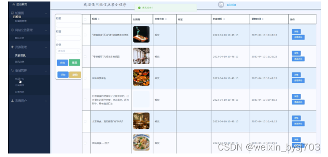 (2)网站公告管理:管理员在后台可以对微信点餐小程序中显示的网站公告进行增删改查。