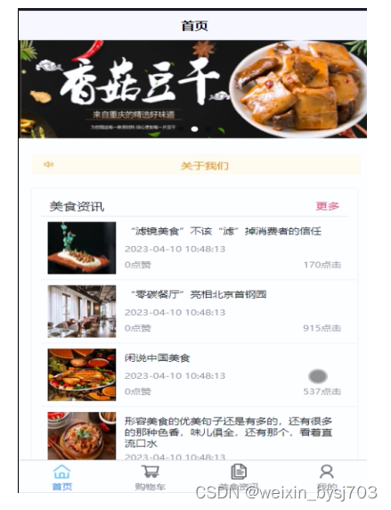 (4)美食资讯:用户可以查看美食资讯,在查询到自己想要了解的美食资讯的时候,可以进入查看详细的介绍进行评论、点赞、收藏操作。