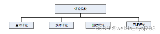 微信点餐小程序是一个交流性质的公开平台,系统用户可以在平台上交流,增加用户之间的互动性。但是同时也为了更好的规范评论的内容,给予管理员删除不合适的评论的功能,所以需要专门设计一个评论管理模块,具体的结构图如下: