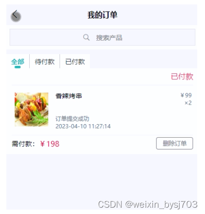(5)订单:用户在提交订单后,可以对提交的订单进行管理。