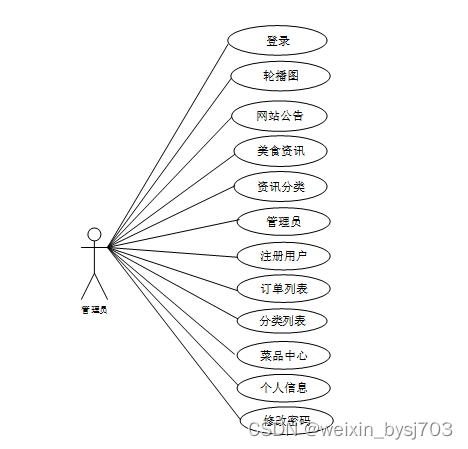 web后台管理上的管理员是维护整个微信点餐小程序中所有数据信息的。管理员角色用例如图2-4所示。
