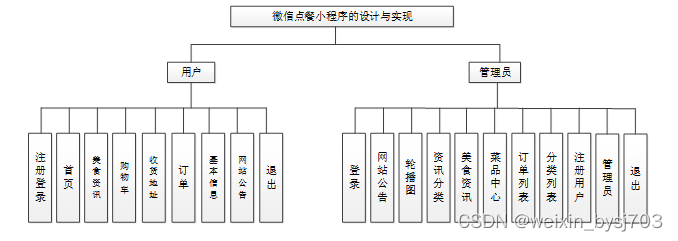 微信点餐小程序是中需要存储不少菜品信息,其模块功能结构,具体的结构图如下: