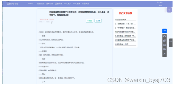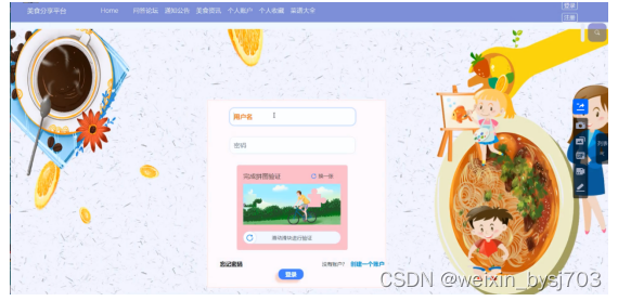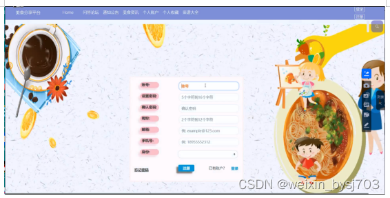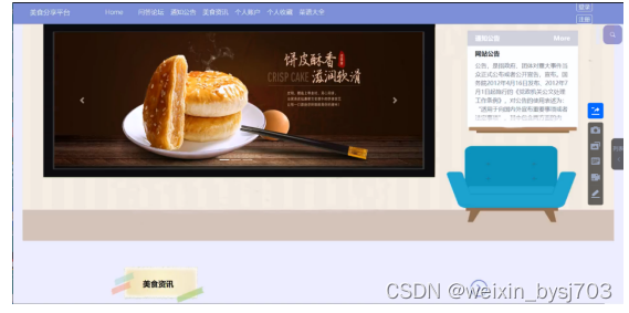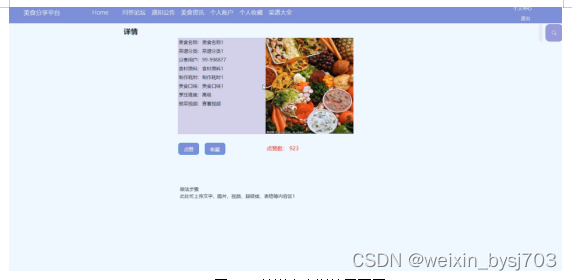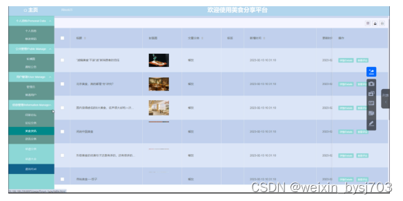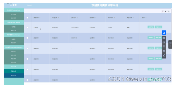 With the improvement of people's living standards, people's demand for food is also higher and higher, and the demand for all kinds of food information is increasing. Therefore, combined with the rapid development and popularity of computers, it is imperative to create a simple, beautiful and functional food sharing platform based on this to meet the needs of users to share food.