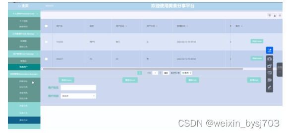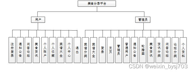 美食分享平台从角色上划分为了普通用户、管理员两种角色。