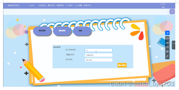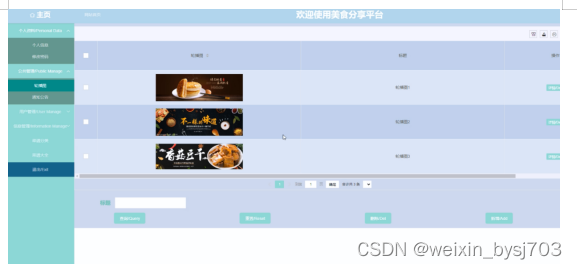 (2)美食分享平台中的web后台管理中的前端使用的是bootstrap框架,它配合ajax和jquery可以美化页面设计。