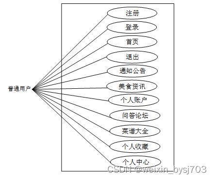 图2.1 美食分享平台中普通用户角色用例图