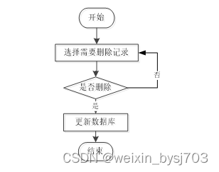 管理员可以对清仓信息等进行信息的删除,对要删除的信息进行选中后,点击删除按钮,系统会询问是否确定,若点击确定,则系统会删除掉选中的信息,并在数据库内对信息进行删除,删除信息流程图如图3-6所示。