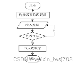 管理员可以对清仓信息等进行的修改,用户和清仓也可以对自己权限内的信息进行修改,首先进入修改信息界面,输入修改信息数据,系统进行数据的判断验证,修改信息合法则修改成功,信息更新至数据库,信息不合法则修改失败,重新输入。修改信息流程图如图3-5所示。